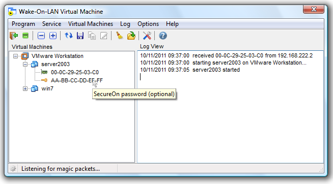 If a virtual machine is turned on by the Wake-On-LAN Virtual Machine service you cannot open it by the vmplayer.exe program. The only way to access it is using remote desktop tools like Remote Desktop Assistant.